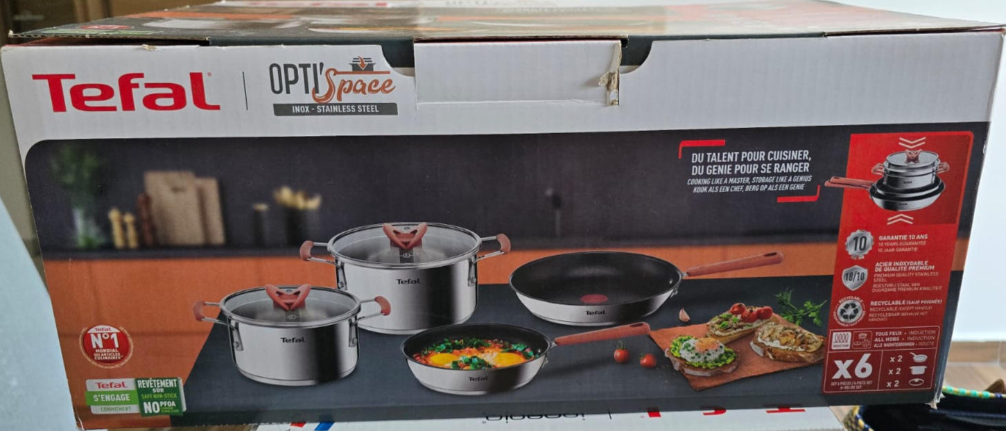 T-fal Batería de 6 Piezas Opti'Space de Acero Inoxidable